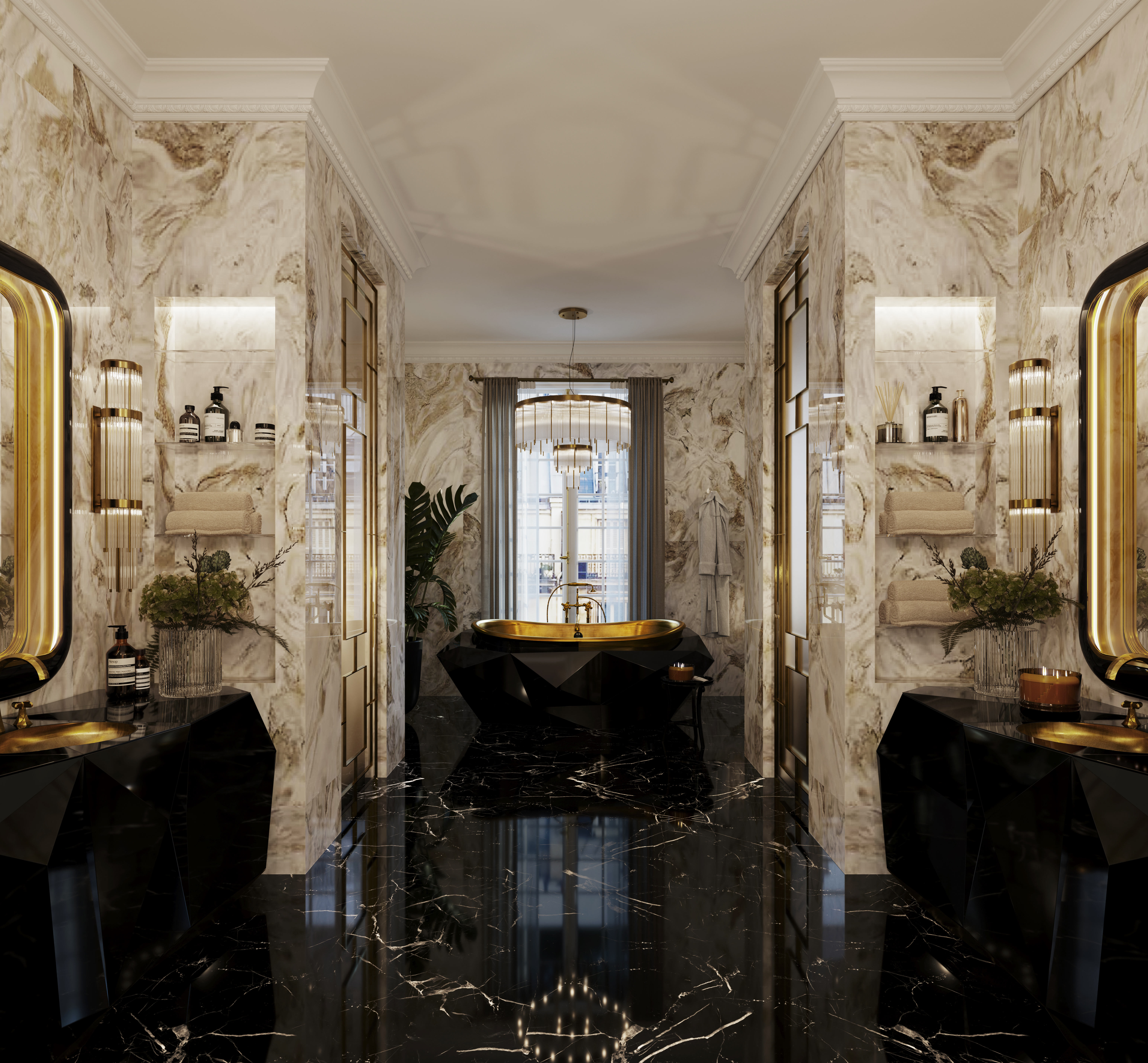 Lapiaz Bathtub: Gold and Black Lacquered Stainless Steel